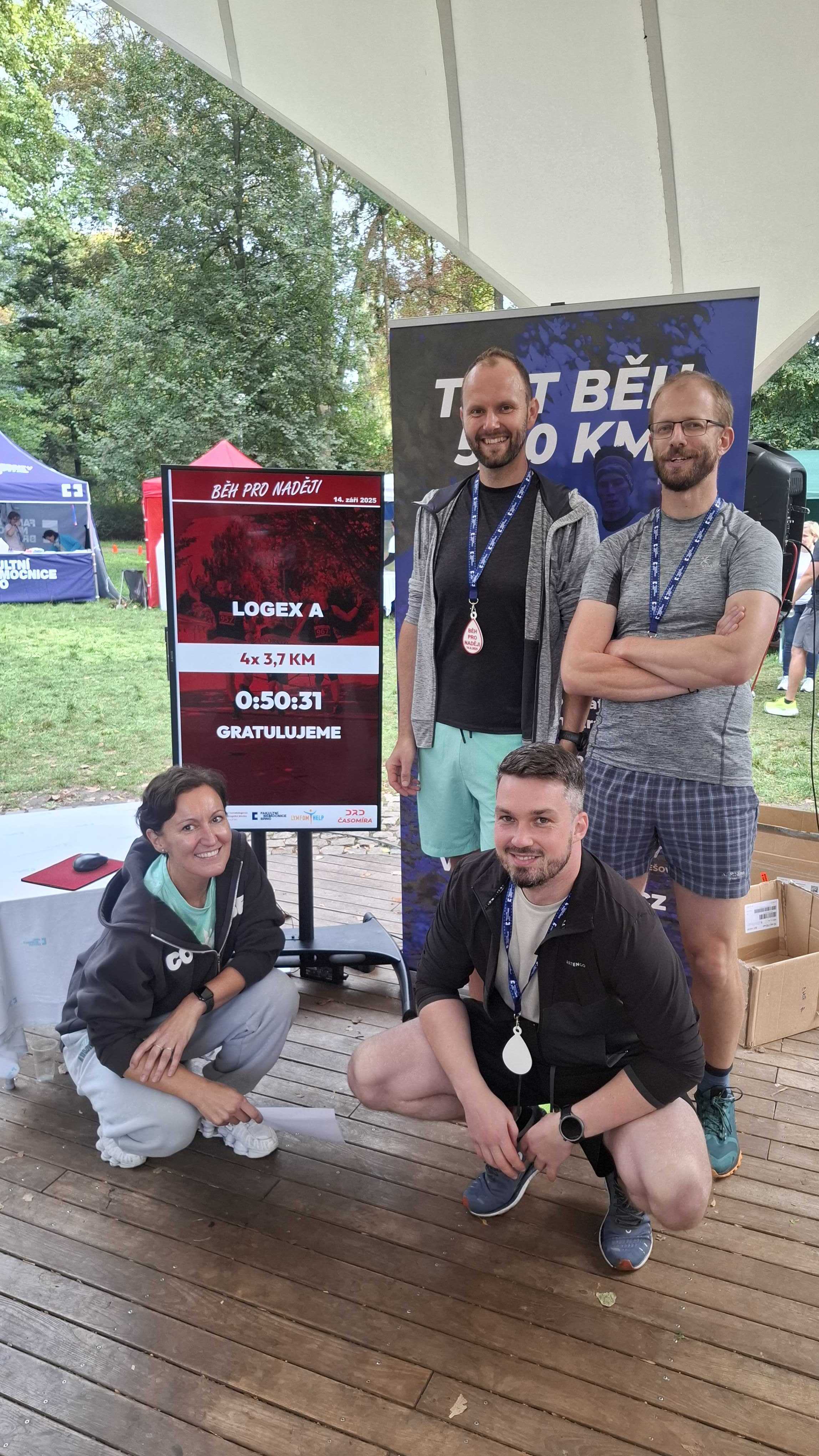 Všichni naši běžci závod dokončili s výbornými časy — a hlavně s úsměvem. I když nešlo o týmový sport v pravém slova smyslu, týmová atmosféra byla všude: fandění, podpora a společný cíl doběhnout s úsměvem.