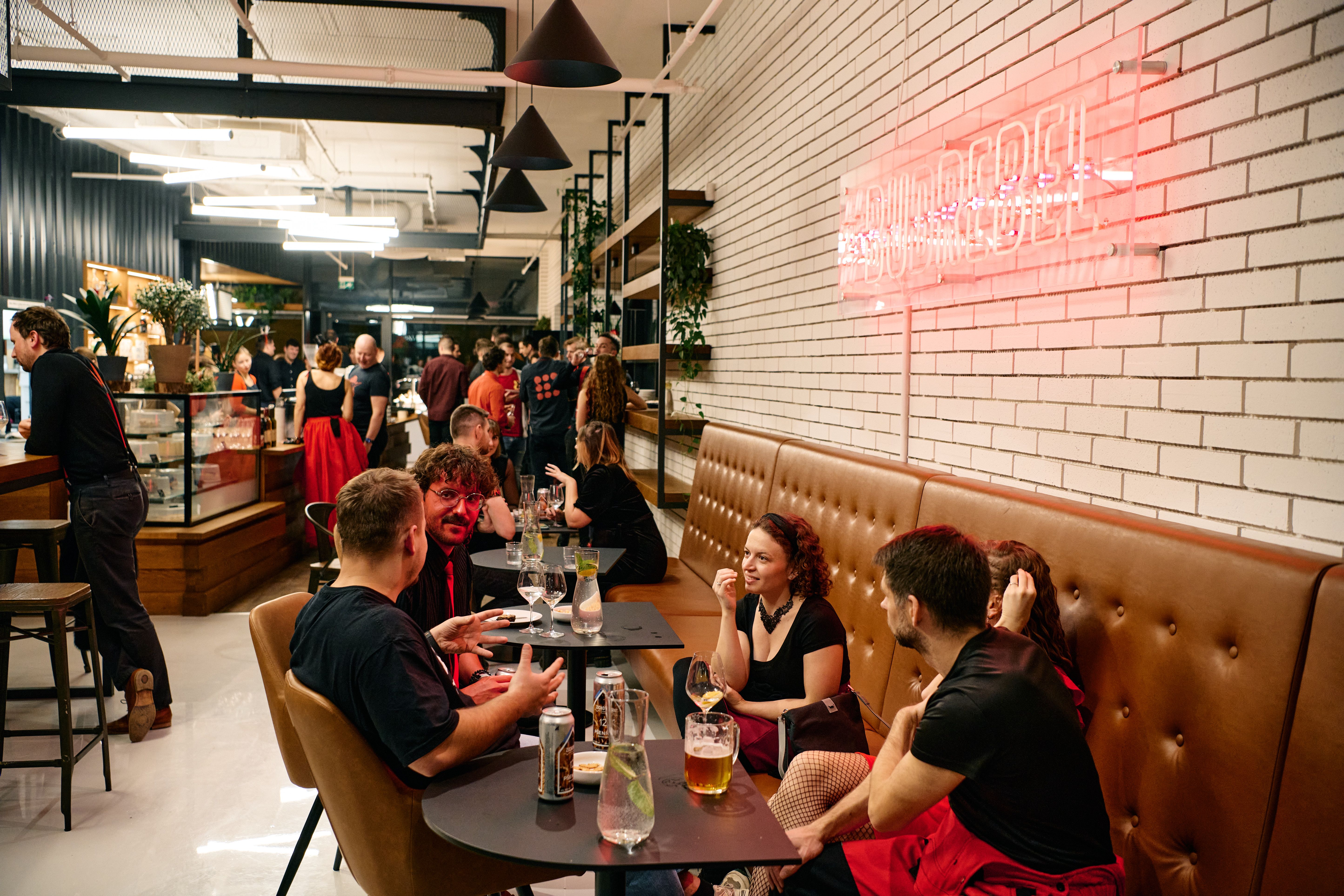 Jako místo jsme si vybrali brněnský Rebelbean, podnik, který je známý nejen skvělou kávou a atmosférou, ale především výrazným neonovým nápisem Buď Rebel, který se stal vizuální kotvou celého večera. Od dress code v barvách Black & Red, přes hudbu, až po náladu – všechno jelo na vlně originality, sebevyjádření a neformální pohody.